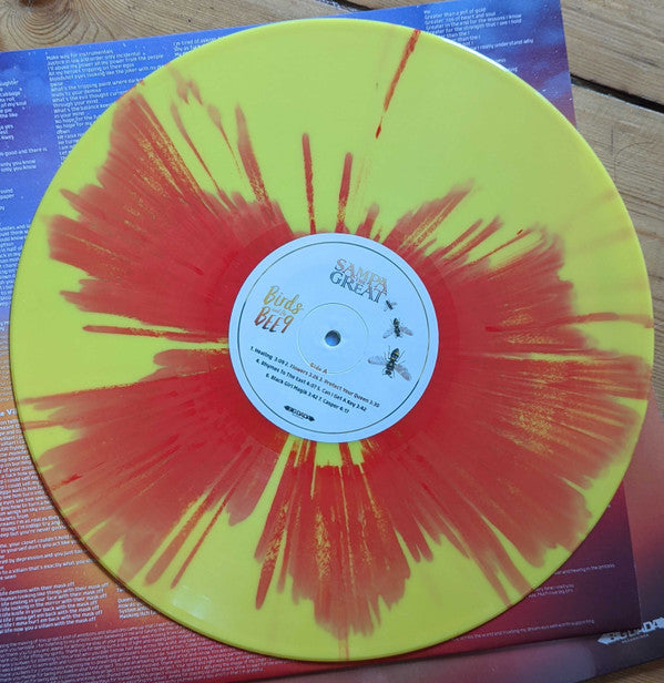 RSD 2022 repress with liner notes from Sampa The Great Hype sticker reads: "Sampa The Great Birds And The BEE9 Mixtape Limited Edition 5th Anniversary Yellow and Orange splatter vinyl DOWNLOAD CODE INCLUDED"