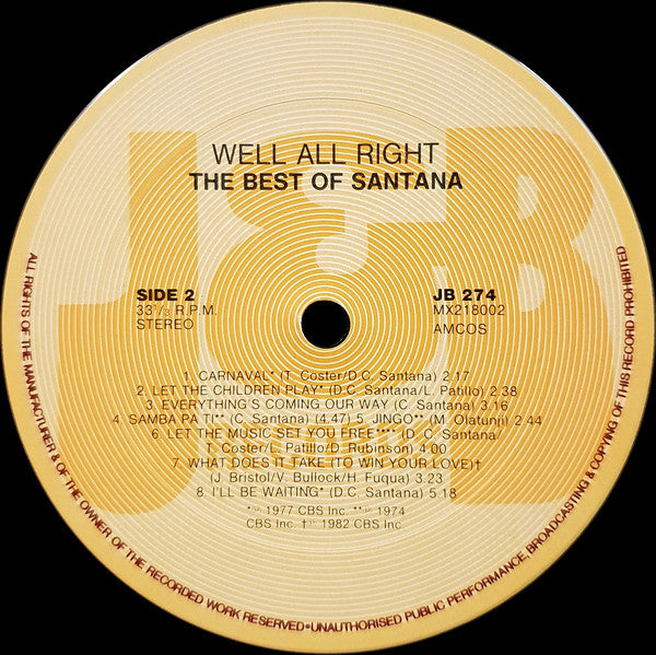 Santana - The Best Of Santana: Well All Right - LP, Comp - Very Good Plus (VG+)