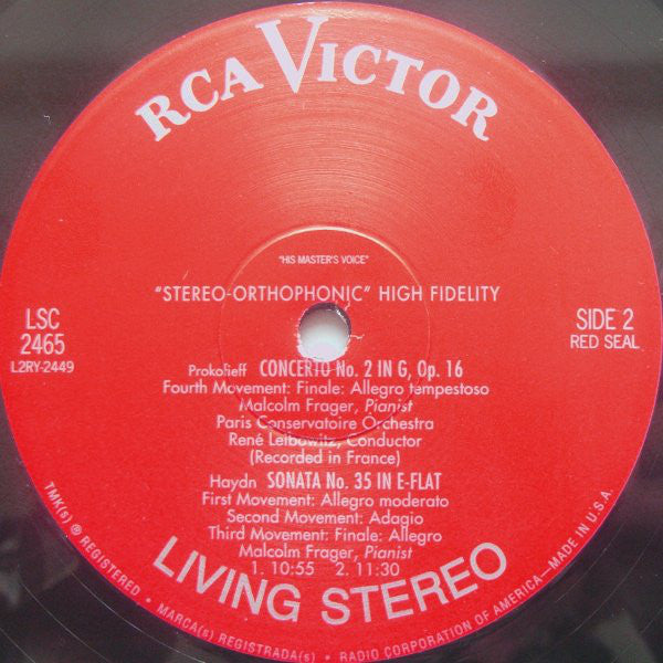 Sergei Prokofiev / Joseph Haydn, Malcolm Frager, Orchestre De La Société Des Concerts Du Conservatoire, René Leibowitz - Concerto No. 2 - LP, RE, 180 - Mint (M)