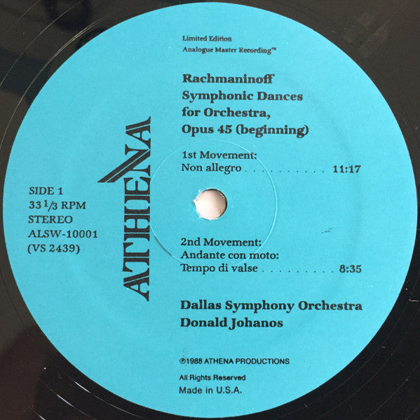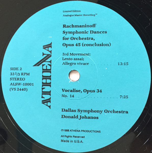 Sergei Vasilyevich Rachmaninoff, Dallas Symphony Orchestra, Donald Johanos - Symphonic Dances, Vocalise - LP, Ltd, RE, RM - Mint (M)