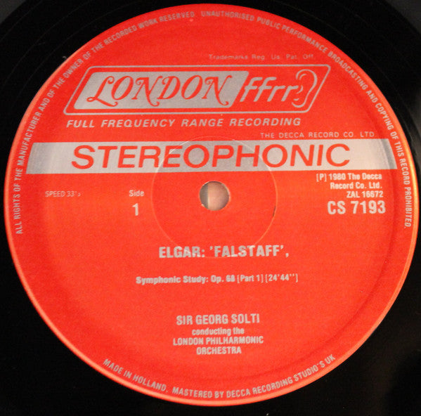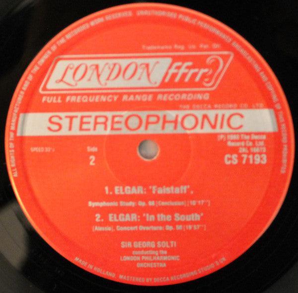 Sir Edward Elgar, London Philharmonic Orchestra, Georg Solti - Falstaff / In The South - LP - Near Mint (NM or M-)
