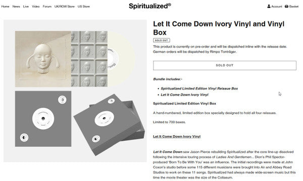 Label for Side C erroneously lists Won't Get To Heaven (The State I'm In) as the fourth track, but it is actually the first track for Side D. Same release as [r20556940 but bundled with a box to hold all four reissues limited to 700. Due to a production delay, the box is not numbered as it was claimed on the Spiritualized order page. It was also possible to order the box separately for £10. Mastering credits derived from runout side A. Runouts stamped other than the second set of 'FP 1754....' strings which is etched and the BAZZA ALCHEMY in side A runout