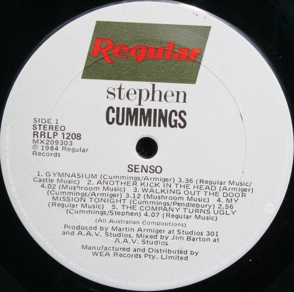 Released with a printed inner sleeve. Back cover: Marketed by WEA Record & Tape Distributors Pty. Limited. Labels: ℗ 1984 Regular Records. Manufactured and Distributed by WEA Records Pty. Limited. Catalog# on sleeve: RRLP-1208 Catalog# on labels: RRLP 1208