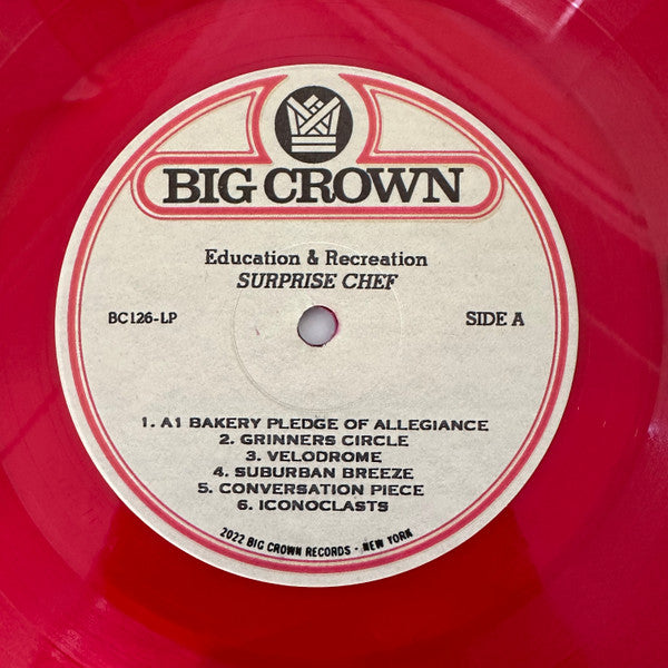 Hype sticker: Limited Edition Indie Retail Exclusive Pressing Clear Red Colored Vinyl Sticker code: BC126-LP-C2 Thank You: Love to our landlord, neighborhood sweetheart Angela, new team member Goldie Joy and Susan at Moreland LPO. This album was recorded on the sovereign lands of the Wurundjeri people of the Kulin Nation. We pay our respects to elders past and present. "Education & Recreation is a synthesis of Surprise Chef's approach to living and making music together; the central tenants of Surprise Chef's process." Also available in UK Indie retail stores up and down the country.