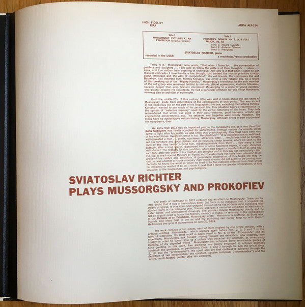 Sviatoslav Richter - Modest Mussorgsky, Sergei Prokofiev - Pictures At An Exhibition · Sonata No. 7 In B-Flat Major, Op. 83 - LP, Album, Mono, Gat - Very Good Plus (VG+)