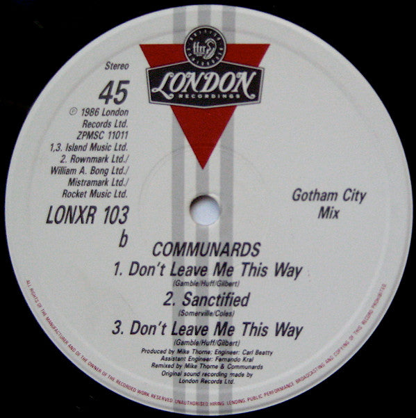 'Don't Leave Me This Way': Island Music Ltd. 'Sanctified': Rownmark Ltd./William A. Bong Ltd./Mistramark Ltd./Rocket Music Ltd. ℗ 1986 London Records Ltd. Original sound recording made by London Records Ltd.