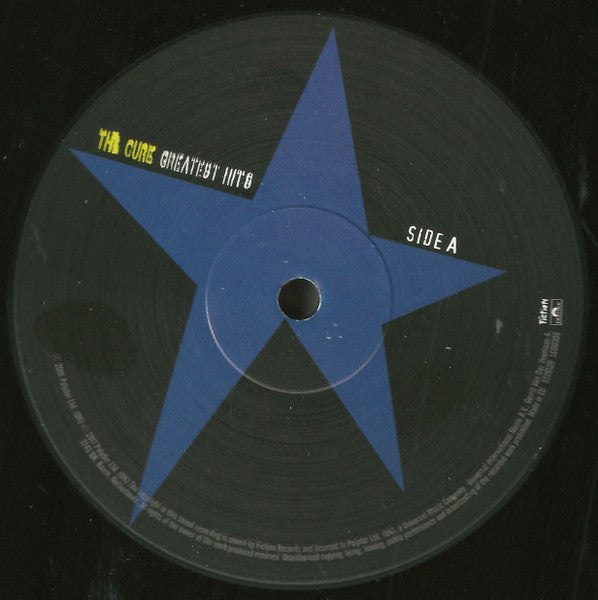 Black vinyl reissue of the picture disc released in April 2017 as Record Store Day exclusive. Originally released in 2001 on CD and cassette. Some copies came with a hype sticker reading: "The Cure Greatest Hits 180gram Vinyl Remastered by Robert Smith Contains a Download Voucher 571 543-4" ℗ 2001 Polydor Ltd. (UK) © 2017 Polydor Ltd. (UK) The copyright in this sound recording is owned by fiction Records and licensed to Polydor Ltd. (UK), a Universal Music Company. Universal International Music B.V. Made in EU. Released in gatefold sleeve with two top opening printed inner sleeves containing credits and photos. A1. "Boys Don't Cry" - From the Fiction album 'Boys Don't Cry' February 1980 A2. "A Forest" - From the Fiction album 'Seventeen Seconds' April 1980 A3. "Let's Go To Bed" From the Fiction album 'Japanese Whispers' December 1983 A4. "The Walk" From the Fiction album 'Japanese Whispers' December 1983 A5. "The Lovecats" From the Fiction album 'Japanese Whispers' December 1983 B1. "Inbetween Days" From the Fiction album '22309' August 1985 B2. "Close To Me" From the Fiction album '22309' August 1985 B3. "Why Can't I Be You?" From the Fiction album 'Kiss Me Kiss Me Kiss Me May 1987 B4. "Just Like Heaven" From the Fiction album 'Kiss Me Kiss Me Kiss Me May 1987 B5. "Lullaby" From the Fiction album 'Disintegration' May 1989 C1. "Lovesong" From the Fiction album 'Disintegration' May 1989 C2. "Never Enough" From the Fiction album 'Mixed Up' November 1990 C3. "High"From the album 'Wish' 1992 C4. "Friday I'm In Love" From the album 'Wish' 1992 D1. "Mint Car" From the Fiction album '32090' 1996 D2. "Wrong Number" From the Fiction album 'Galore' 1997 D3. "Cut Here" From the Fiction album '32194' October 2001 D4: "Just Say Yes" From the Fiction album '32194' October 2001 Some copies include MP3 (320 kbps) "The Sound Of Vinyl" download voucher, printed on one side only. Variants 4 and 6 did not include a download voucher. Made in Czech Republic sticker located on rear jacket affixed to the plastic wrapping.