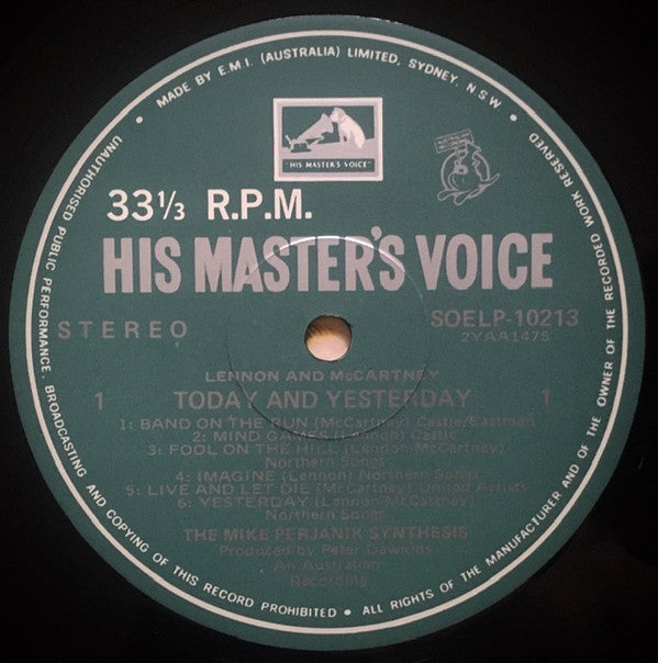 The Mike Perjanik Synthesis - Lennon & McCartney Today & Yesterday - LP, Album - Near Mint (NM or M-)