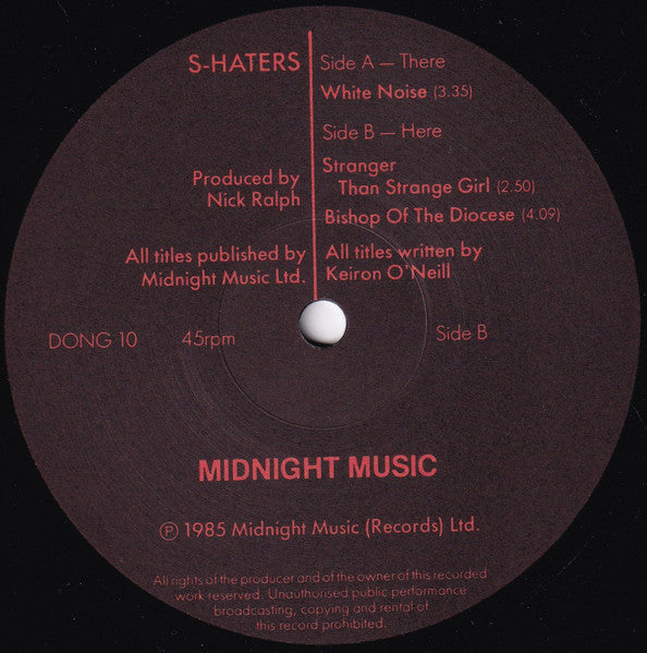 All titles published by Midnight Music Ltd. ℗ 1985 Midnight Music (Records) Ltd. Recorded at Gateway A Twelve O'Clock Production Printed in England © 1984 Midnight Music (Records) Ltd. Matrix run-out info: Pressed By, Lacquer Cut At and Lacquer Cut By credits identified by etched initials / name variations in matrix runout area.