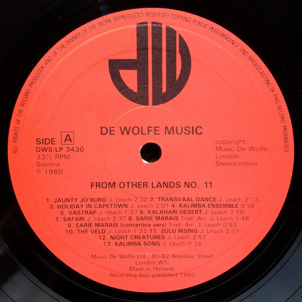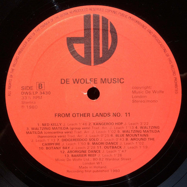 Ethnic music from South Africa, Australia and New Zealand played by the Studio Ensemble Label indicates Made in Holland. Right society STEMRA