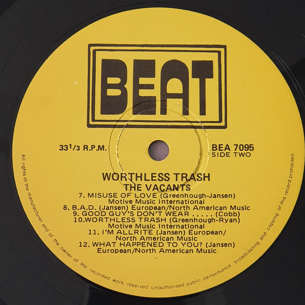 The Vacants - Worthless Trash - LP, Album - Very Good (VG)
