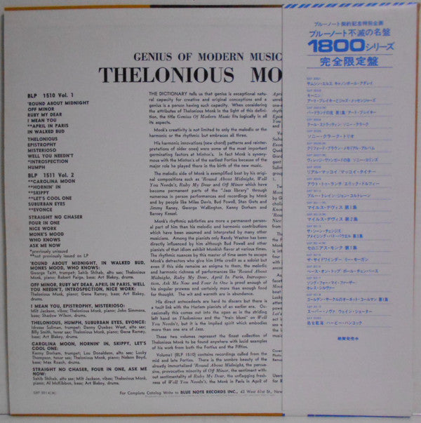 Thelonious Monk - Genius Of Modern Music Volume 1 - LP, Comp, Mono, Ltd - Near Mint (NM or M-)