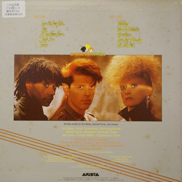 Manufactured by Nippon Phonogram Co., Ltd., Tokyo Recorded at Compass Point Studios, Nassau Mixed at RAK Studios, London Thanks to John Dickenson at Movement Computer Services Lyric insert and obi-strip. Note: The oval at the top of the obi on the front of the record can vary from a red oval to a yellow oval. With the yellow oval, the text can vary in that as well.
