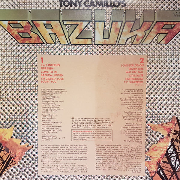 Made in Australia by Festival Records Pty Ltd. ℗ 1975 A & M Records Inc. Produced for Camillo/Marcucci Productions Recorded at: Venture Sound Studio, Sounds of Somerville, New Jersey. Michael & Randy Brecker appear courtesy of Arista Records Barry Miles appears courtesy of London Records