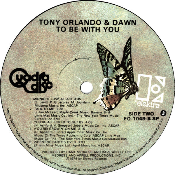 Tony Orlando & Dawn - To Be With You - LP, Album, Quad - Near Mint (NM or M-)