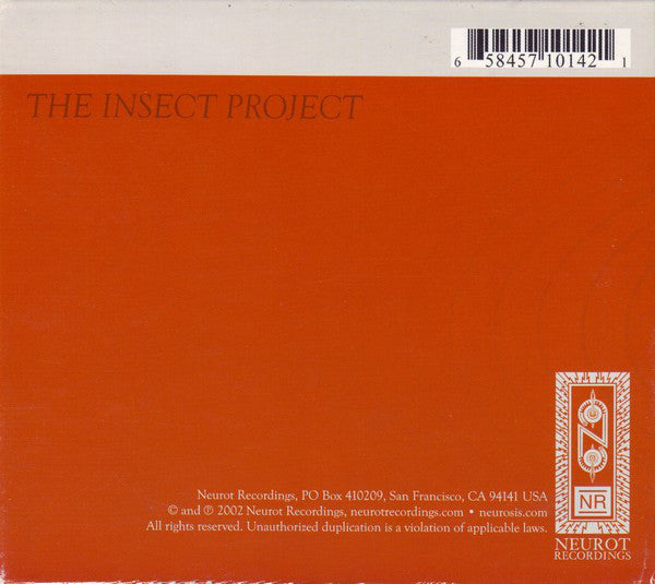 "All sounds sources for these recordings originally derive from insects. Realized at Neurot Studio S.F. Disc 1 contains the mixes for the vinyl edition of this project. Consisting of a 5", 7" and 10", enabling listeners to mix and layer their own unique insect experience utilizing multiple turntables and sound systems. Disc 2 contains a stereo representation of a single potential outcome of such exploration of the many original pieces. Listeners are encouraged to try playing the two discs simultaneously on different sound systems for further depth into the sound of insects. The only limits are the limits of your imagination and effort." ℗ and © 2002 Neurot Recordings