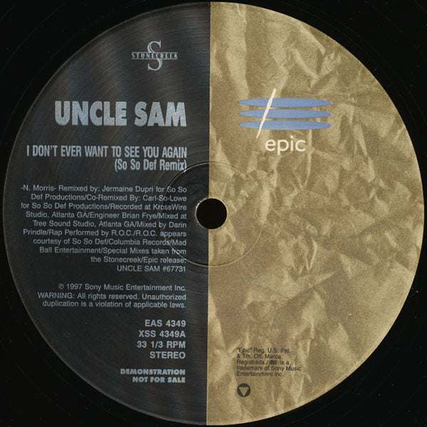 Uncle Sam - I Don't Ever Want To See You Again (So So Def Remix) - 12", Promo - Very Good Plus (VG+)