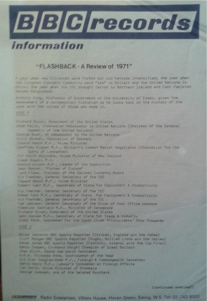 Unknown Artist - From The BBC Sound Library - Flashback A Review Of '71 - LP, Mono - Near Mint (NM or M-)