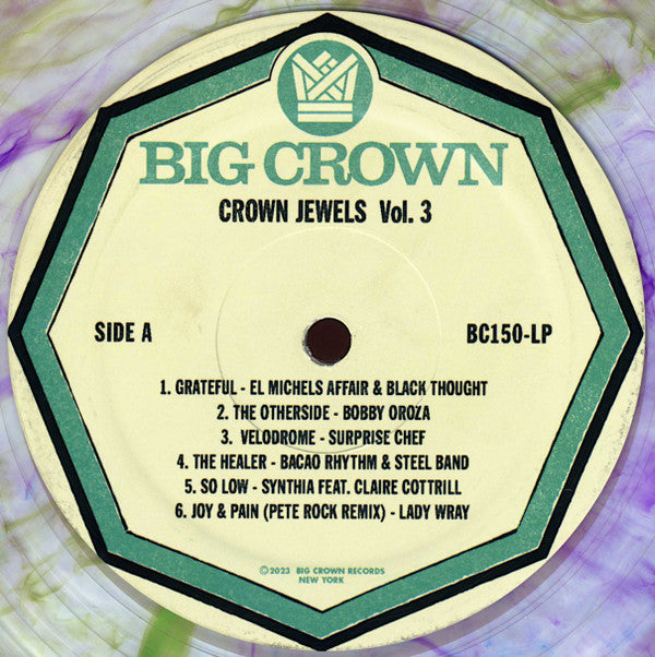 Hype sticker reads "Limited Edition Jewel Pile Colored Vinyl – Selected gems from the Big Crown catalog"