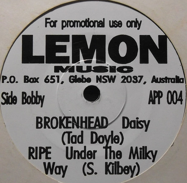 Promo given away with Lemon Magazine #12, August 1991 (2000 copies). Self-published by Louise Dickinson. Track A1, 'In Your Shoes' was produced and engineered by 'Ded' / [a1238477 and The Meanies at Recordio. Track B1 is a cover of the [a56157 song 'Daisy'. Track B2 is a cover of [a258153 song 'Under the Milky Way'.