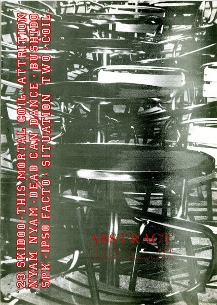 All tracks copyright control except: A Primary Industry - 'Les Tempes Modernes', Attrition - 'Third Mind', Legendary Pink Dots - 'Third Mind', Bushido - 'Third Mind', Stress - 'Third Mind', Possession - 'A Mision' A Culling Between Abstract Magazine & Third Mind Records. The copies include Abstract Magazine, Issue 4, which features: - interviews with SPK, Attrition, Dead Can Dance, The Loved One, Stress, This Mortal Coil, Coil, Bushido, A Primary Industry, and Les Temps Modernes - short features on Possession, Ipso Facto, Legendary Pink Dots, Situation Two, Tea House Camp and Nyam Nyam - "Five Go MAD in Europe" - "Le Soleil De Ma Jeunesse" by Mike Harding - reviews - letters from Genesis P Orridge and Mick Mercer Track B6 recorded at Offbeat Studio, Leeds, 19/07/84.