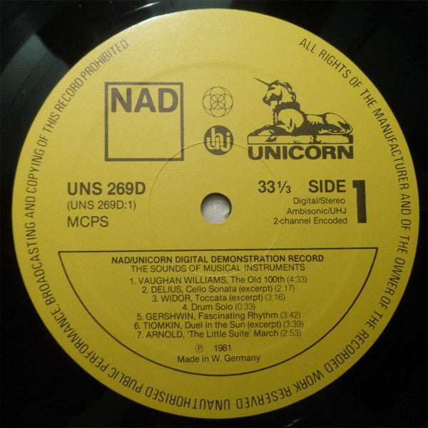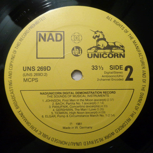 Various - Sounds Of Musical Instruments - NAD / Unicorn Digital Demonstration Record - LP, Comp - Near Mint (NM or M-)