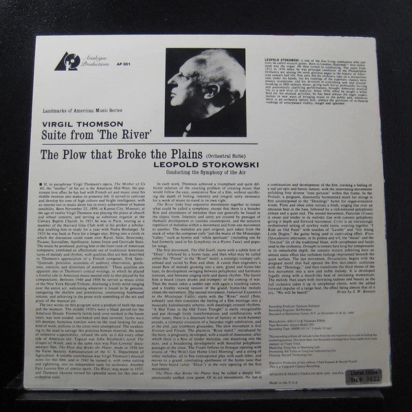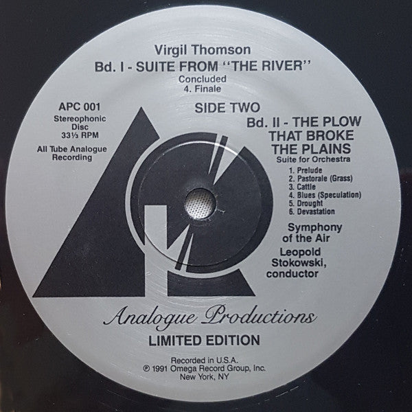 Virgil Thomson, Symphony Of The Air, Leopold Stokowski - The Plow That Broke The Plains · Suite From 'The River' - LP, Ltd, Num, RE, RM - Near Mint (NM or M-)