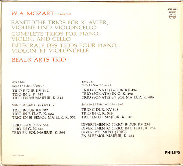Wolfgang Amadeus Mozart - Beaux Arts Trio - Die Klaviertrios The Piano Trios Les Trios Avec Piano - 2xLP + Box - Near Mint (NM or M-)