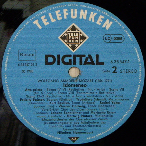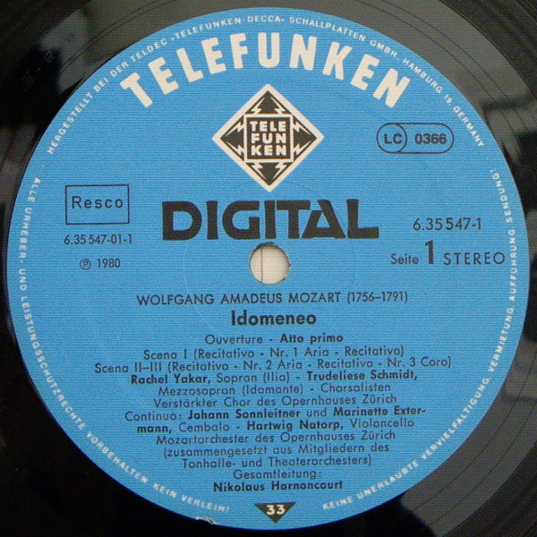 Wolfgang Amadeus Mozart, Werner Hollweg, Trudeliese Schmidt, Rachel Yakar, Felicity Palmer, Kurt Equiluz, Robert Tear, Simon Estes, Mozartorchester Des Opernhauses Zürich & Chor der Oper Zürich, Nikolaus Harnoncourt - Idomeneo - 4xLP, Blu + Box - Near M