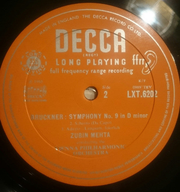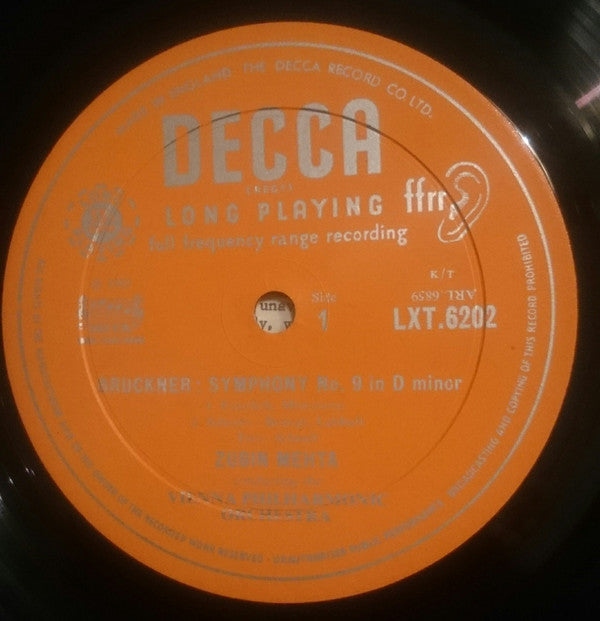 Zubin Mehta, Anton Bruckner, Wiener Philharmoniker - Symphony No.9 In D Minor - LP, Mono - Very Good Plus (VG+)
